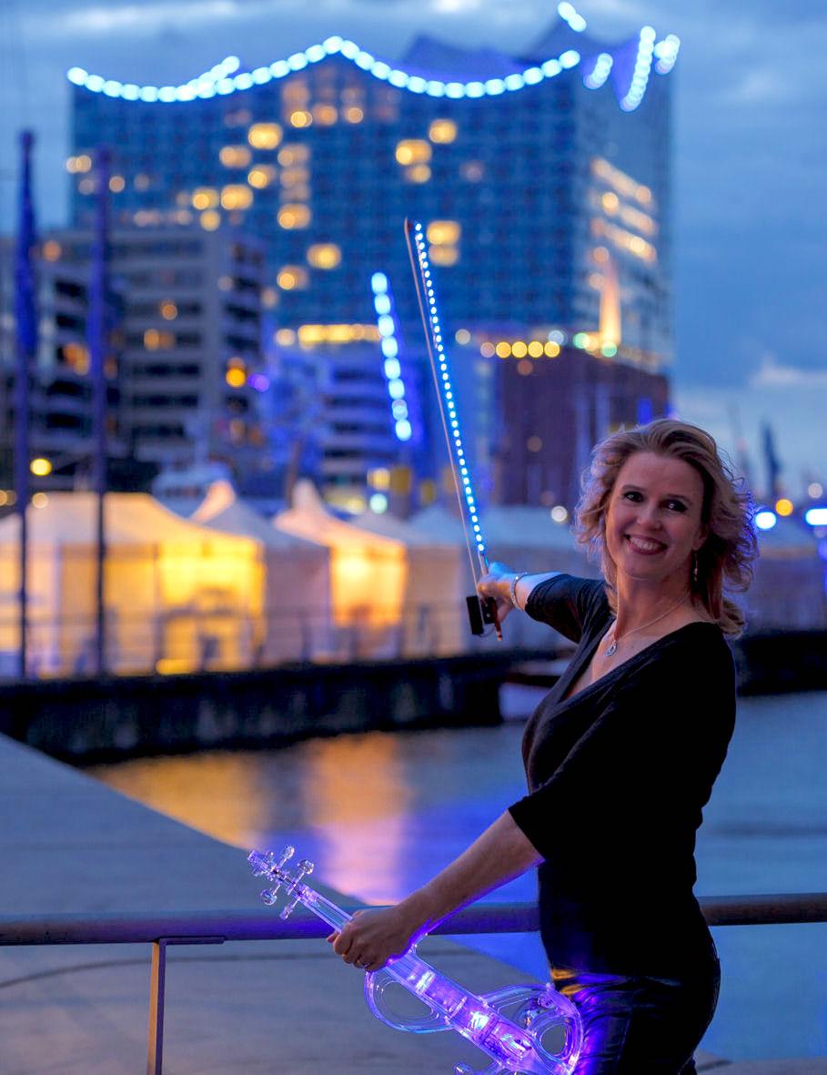 Die sympathische, virtuose Violinistin Ilona Raasch, die kürzlich in London vor TOM CRUISE spielte, begeistert seit vielen Jahren ihr Publikum mit phantastischen Auftritten von Klassik bis ROCK und von Holzgeige bis zur blau leuchtenden E-Violine.