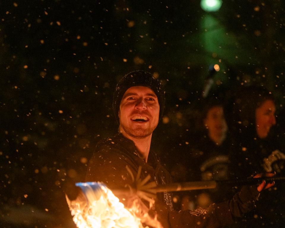 -Feuer Show mit Dragonstaff, Stab und Poi