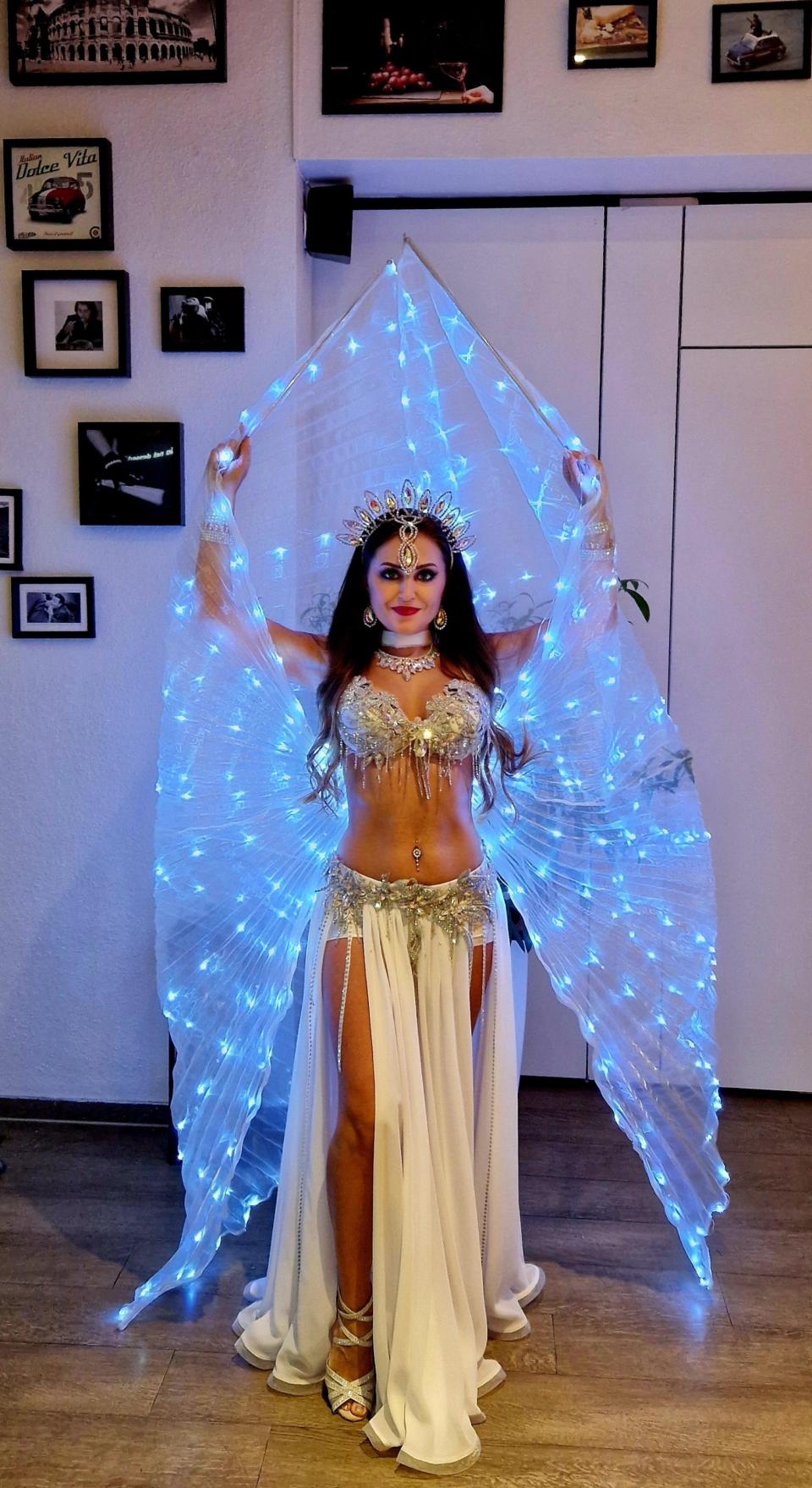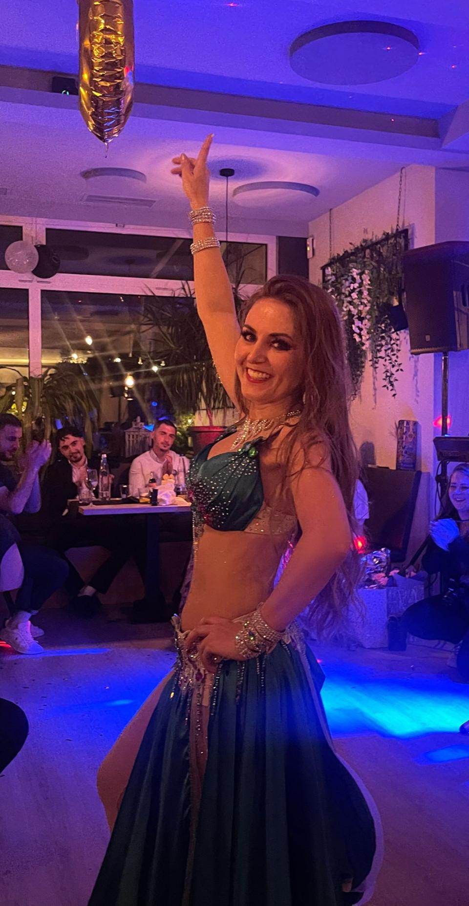 Ihr Tanzstil ist fließend und elegant. Bei Ihren Auftritten überzeugt sie mit ihrer Vielfalt den Orientalischen Tanz zu präsentieren, zu interpretieren und durch ihren eigenen Ausdrucksstarken Stil in Szene zu setzen. Sie tanzt klassisch orientalisch kombiniert mit modernen Elementen und bereichert Ihren Tanz mit wunderschönen Accessoires wie, Isis Wings, Schleier, Säbel, Fächerschleier.....