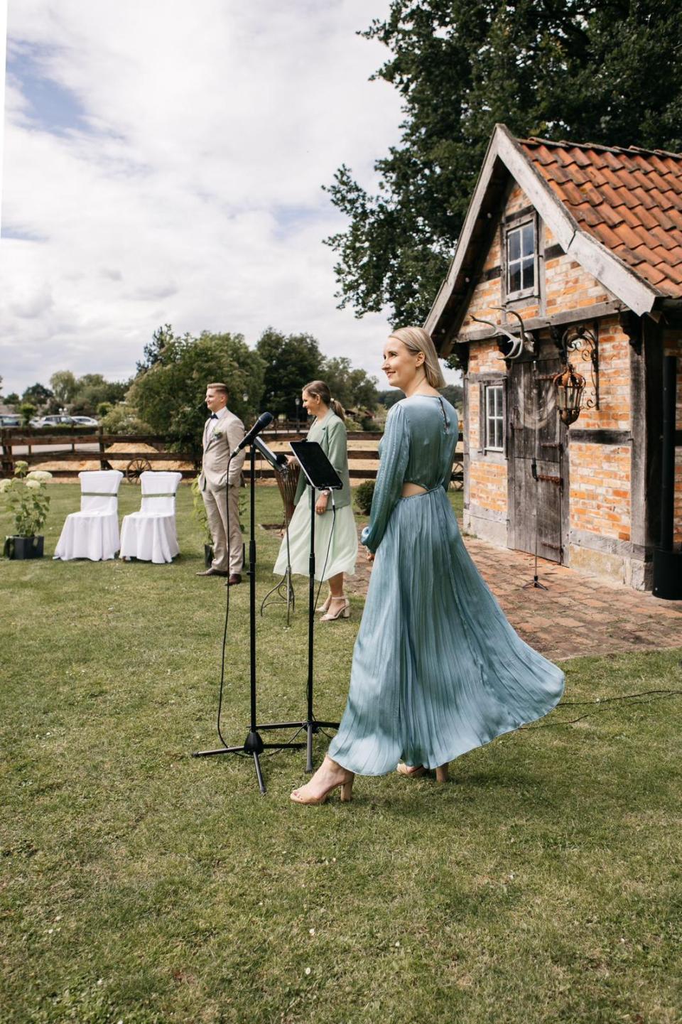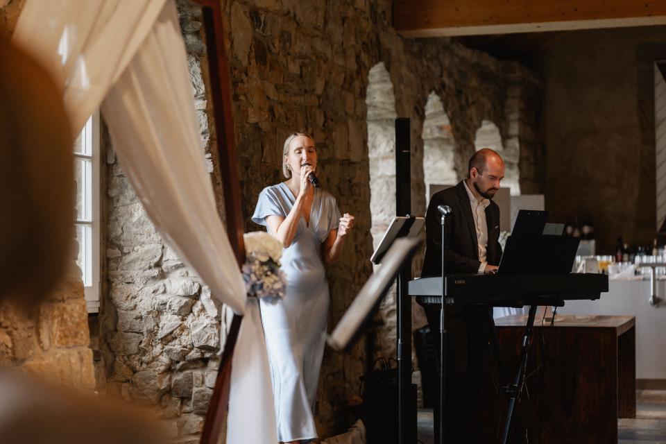 Ich bin ausgebildete Musicaldarstellerin und darf jetzt schon seit über acht Jahren Paare an ihrem großen Tag begleiten. Ich arbeite mit einer hochwertigen Musikanlage und Instrumentalplaybacks. Wahlweise kann ich mich auch von einem Pianisten und/oder einer Geigerin begleiten lassen. Ganz wie ihr möchtet!