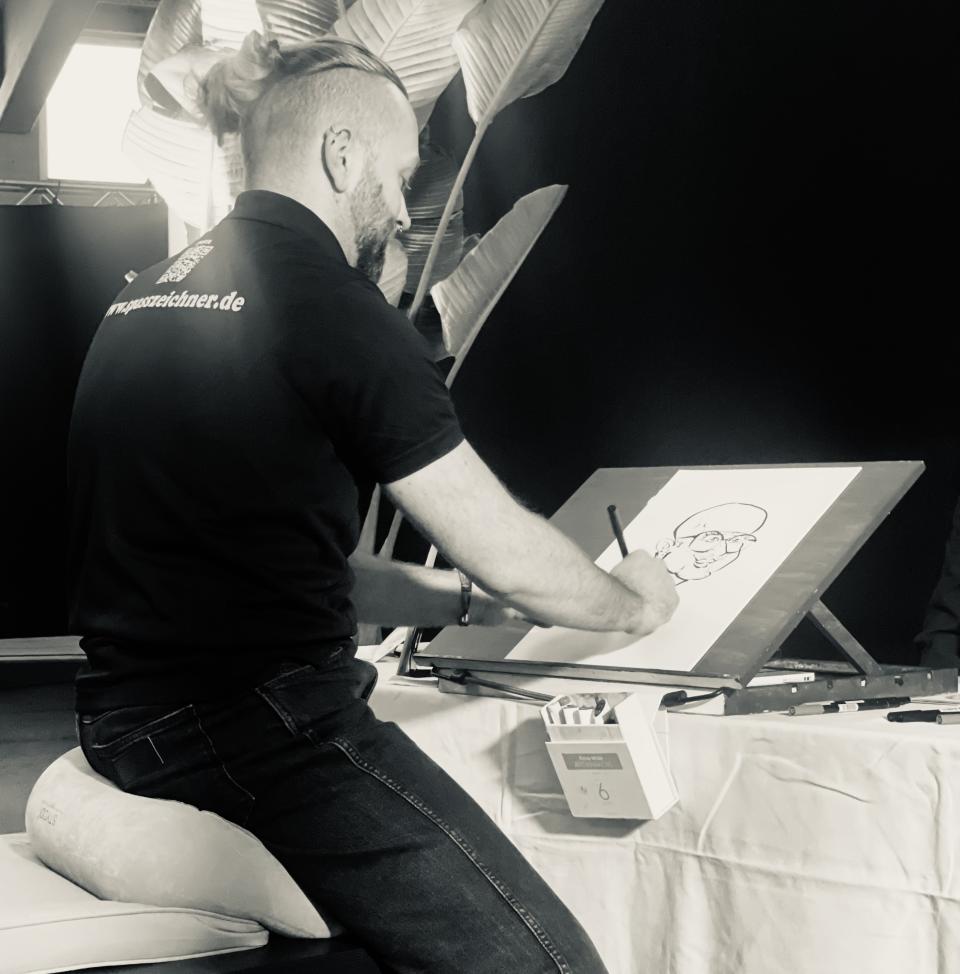 Schnell, lustig und unterhaltsam - der beidhändige Schnellzeichner für Ihre Veranstaltung.