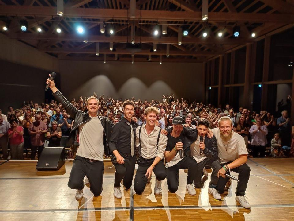 Klar, die Songs müssen englische Popsongs sein! Aber wir erweitern den Begriff „Boyband-Vibe“ ein bisschen – Künstler wie Robbie Williams oder Maroon 5 haben ja zum Beispiel sowieso schon eine gewisse Nähe zur Boyband-Musik. Aber auch aus einem Elvis Presley-Medley oder einem Song von a-ha wie „Take On Me“ lassen sich hervorragende Nummern machen, die gut in so ein Programm passen. Die Zuschauer erwartet also in jedem Fall einiges an Abwechslung! Und übrigens: Wir arrangieren unsere Nummern immer komplett selbst, schreiben sie uns also „auf den Leib“. So wie bei uns werdet ihr diese Songs also garantiert nirgendwo anders hören!