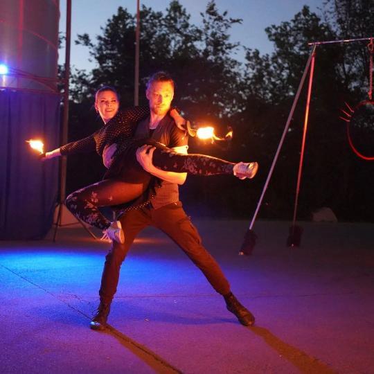 Ihr macht als Artistenduo Feuer- und Lichtshows mit einer großen Prise Akrobatik - wie habt ihr euch eigentlich kennengelernt?
