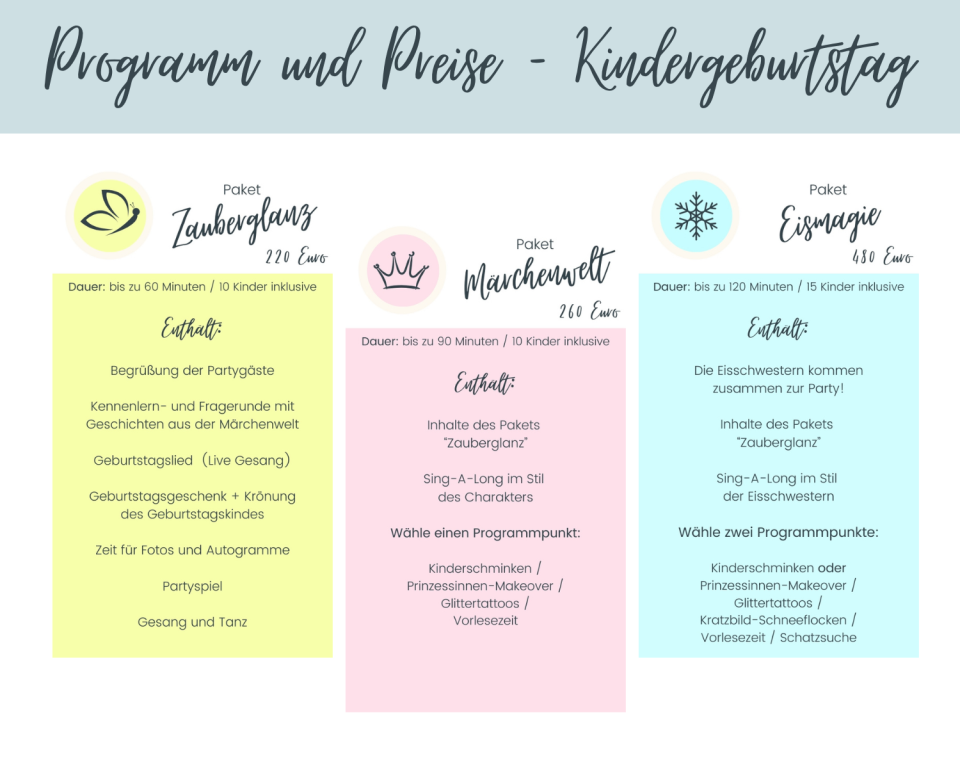Du buchst das Herzblut und die Liebe, die ich in die Entwicklung des Programms gesteckt habe. Du buchst die Spielfreude, die sich in diesem Traumberuf als Märchendarstellerin auf den Partybesuchen überträgt. Du buchst meine langjährige Erfahrung als Geburtstagsprinzessin, die noch keine Kinderfrage unbeantwortet lies.