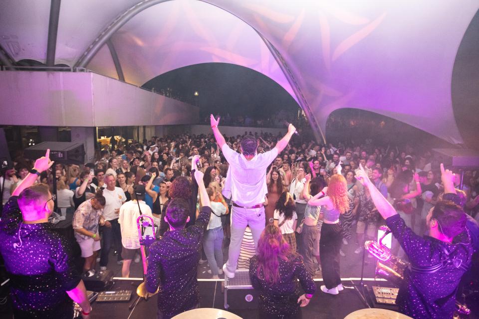 Sie suchen eine Gruppe energiegeladener Musiker mit Brass-Section, knalligen Synthesizer-Sounds und ordentlich Bass? Und sogar das passende Licht- und Tonprogramm gleich dazu?