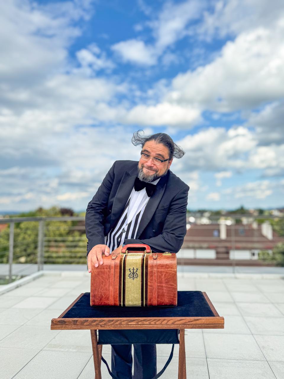Er ist ein Gewinn für jede Veranstaltung in der ein lustiger Kellner, ein charmant-witziger Butler oder ein verschmitzter Tischzauberer gesucht wird.