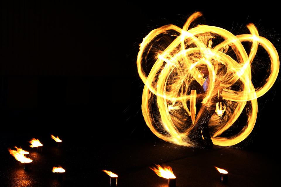 - artistisch-elegante Feuershow mit einer großen Bandbreite unterschiedlicher Feuertools