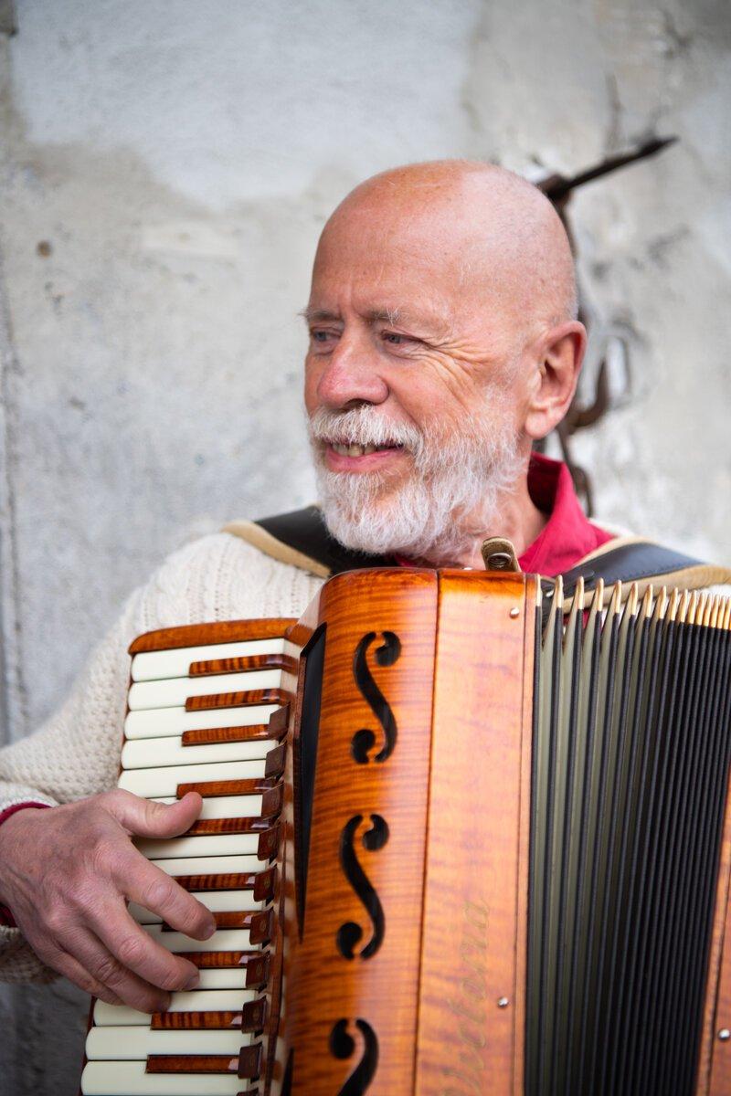 ☞ Bertrand spielt Klavier, Akkordeon, Tuba, Percussion und singt in 9 verschiedenen Sprachen.