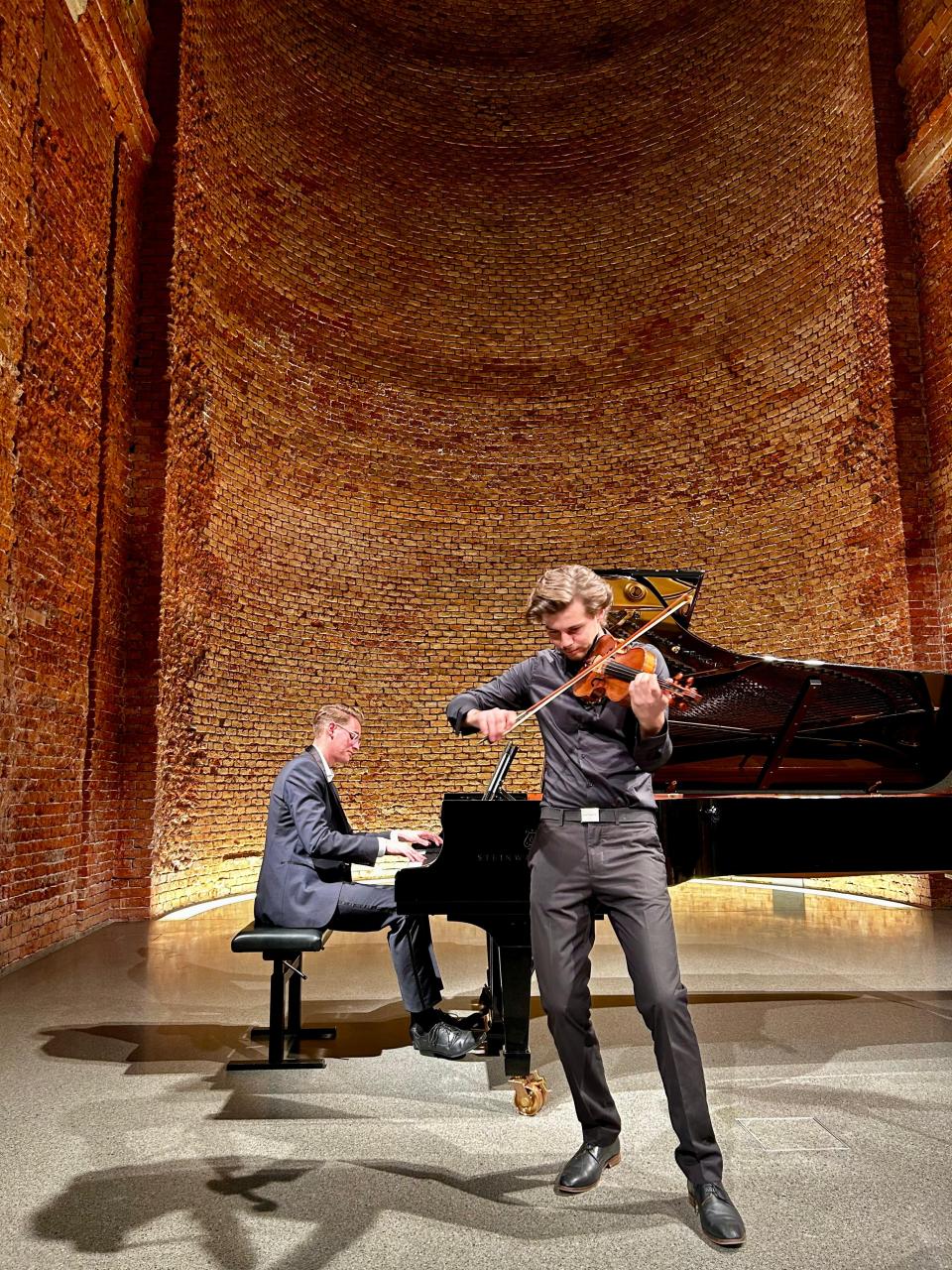 Wir sind Philipp Jonas und Maximilian Schairer und bilden ein festes Duo für Violine und Klavier in München und Stuttgart. Seit über acht Jahren treten wir gemeinsam auf nationalen und internationalen Bühnen auf und pflegen eine kontinuierliche Zusammenarbeit, die auf kammermusikalischer Präzision und gegenseitigem musikalischem Verständnis basiert.