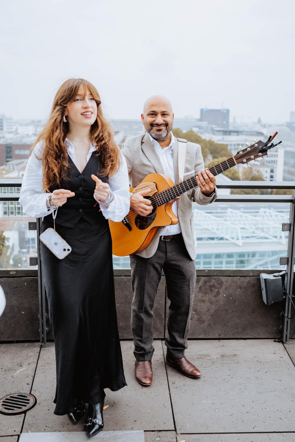 Evermonics bietet eine einzigartige musikalische Darbietung mit der talentierten Sängerin Catalina Isidora von der Folkwang Musikhochschule und dem erfahrenen Gitarristen Amir, Absolvent der Arnheimer Musikhochschule. Senden Sie uns eine Buchungsanfrage, und wir erstellen Ihnen zeitnah ein unverbindliches Angebot!