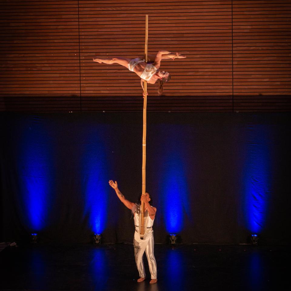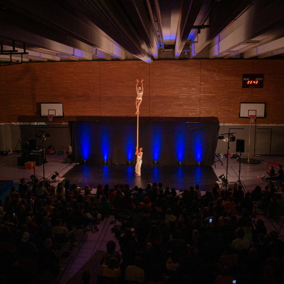 Fabio fasziniert mit moderner, präziser Jonglage, während Julia mit einer ausdrucksstarken Pole-Dance-Performance Kraft, Eleganz und Dynamik verbindet.