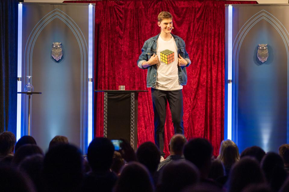 Ich arbeite mit Alltagsgegenständen wie Zauberwürfeln, Karten oder Dingen, die jeder kennt, und mache daraus verblüffende Tricks. Meine Shows sind flexibel: