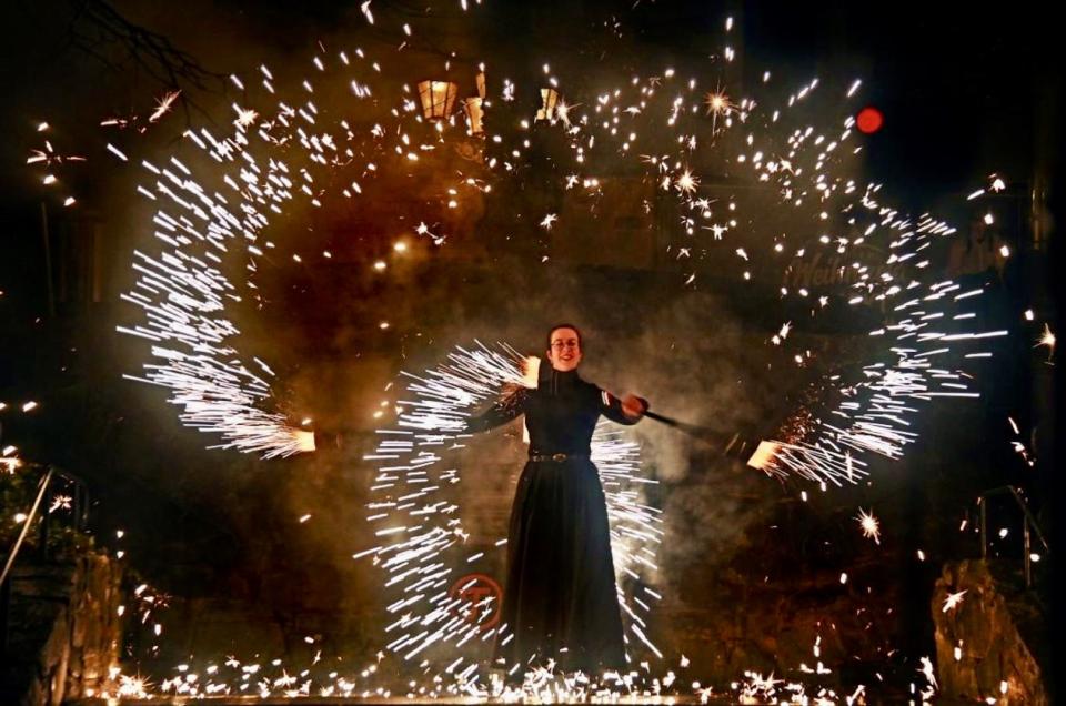 Feuershow, LED Show, Walk Act, Stelzenlaufen, Seifenblasen.