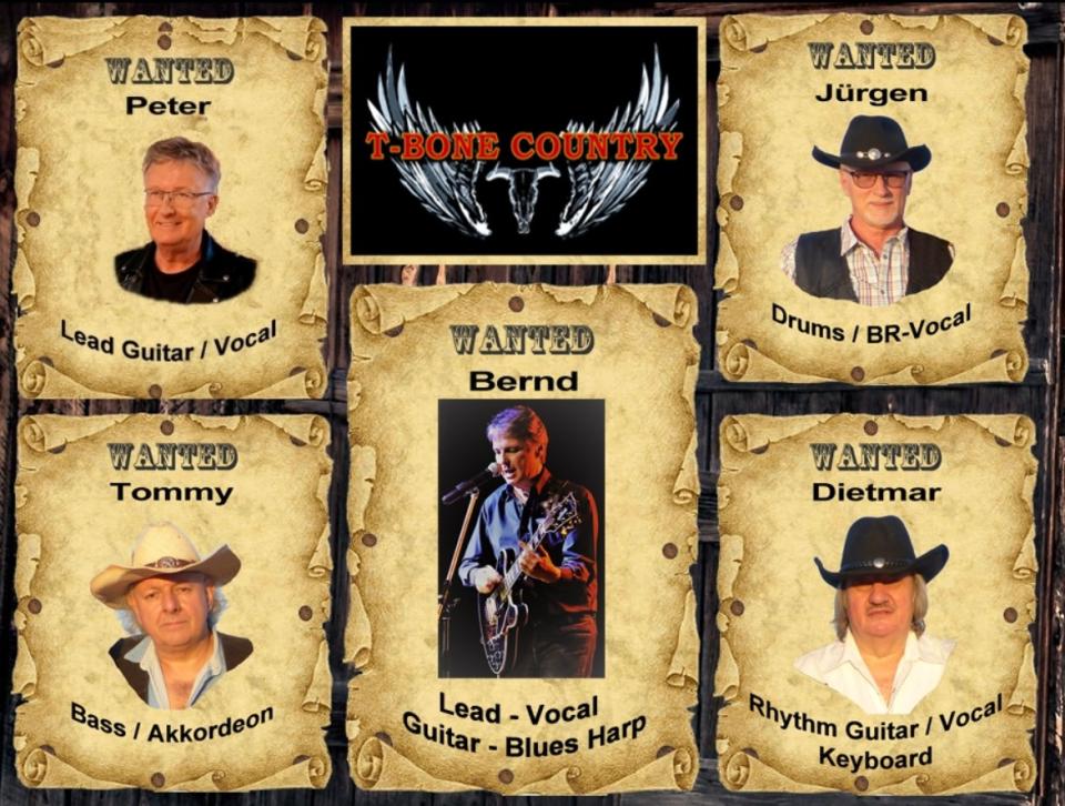 Ob Konzertsaal, Halle, Location, Festzelt, Outdoor oder - ganz persönlich im kleinen Rahmen, T-Bone-Country sorgt bei Firmen-, Vereinsfesten, privaten Feiern und großen öffentlichen Veranstaltungen für eine begeisternde Atmosphäre bei einem Publikum jeden Alters. Alle Musiker blicken auf langjährige professionelle Bühnenerfahrung in verschiedensten Ensembles und Bands zurück.
