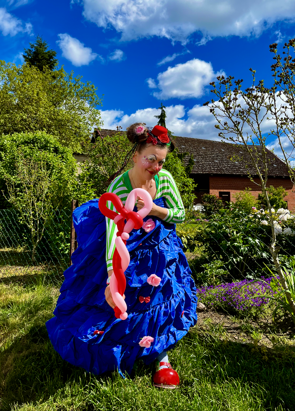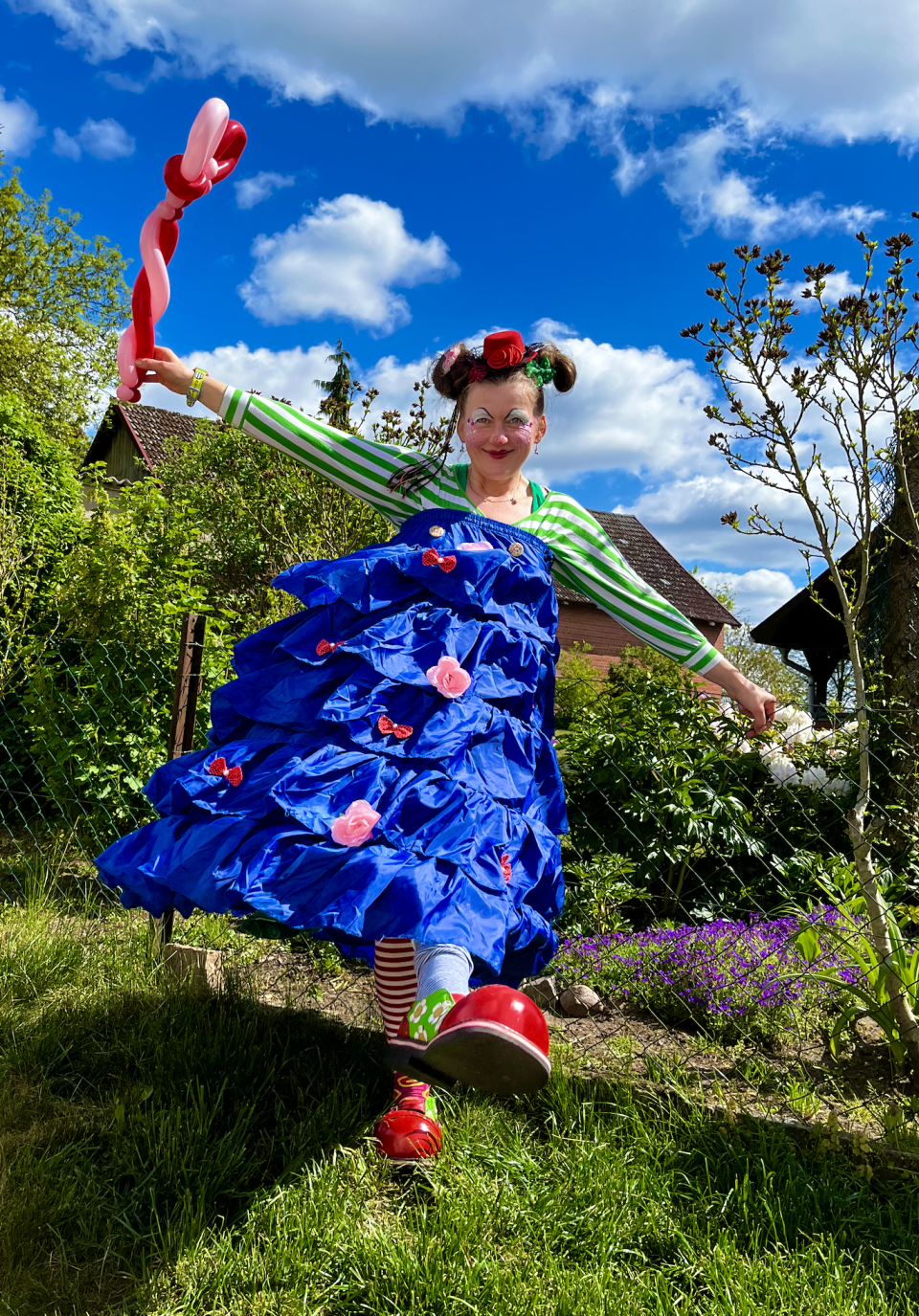 ❤️ einen lustigen Walk Act, sie bewegt sich inmitten ihrer Gäste und bringt sie zum lachen, oder als Ballonclown verzaubert sie die Gäste zusätzlich mit einen reichhaltiges Repertoire an verschiedenen Ballonfiguren.
