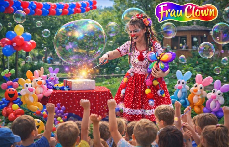 ❤️ der lustige Clowns-Zauber-Quatsch-Show für die kleinen Gäste, Ella Popella stolpert und poltert auf eure kleine Bühne, dann regnet es Konfetti, wie andere zauberhafte Dinge passieren, natürlich mit Quatsch gemacht , mit der puste der kleinen Gäste es noch Ballons gewirbelt...