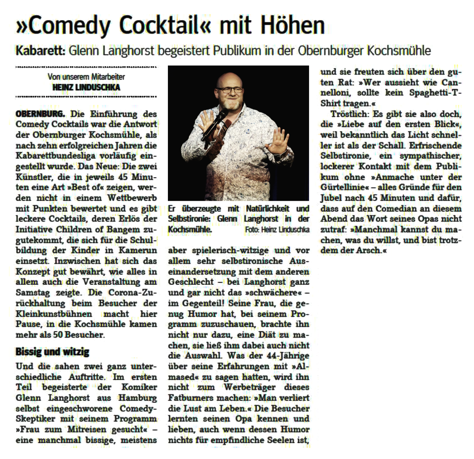 “Glenn Langhorst überzeugt mit Natürlichkeit und Selbstironie und begeistert das Publikum. ”