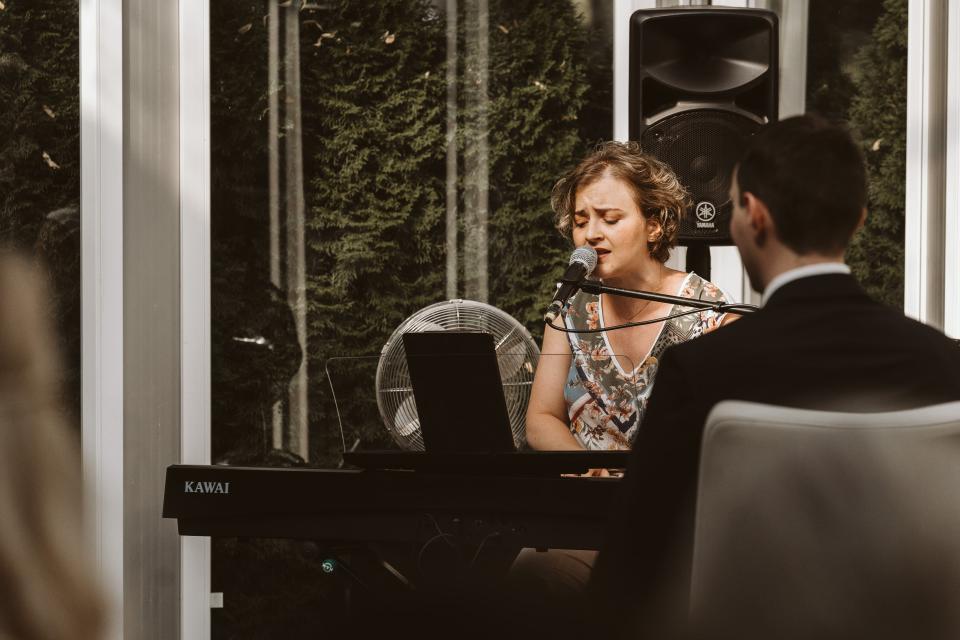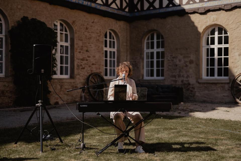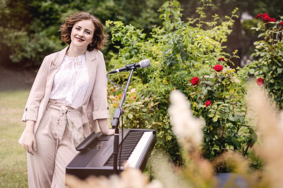 Als studierte Sängerin und Pianistin begleite ich mich selbst am Klavier.