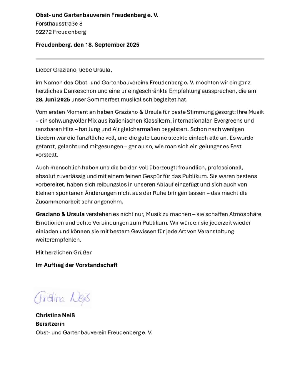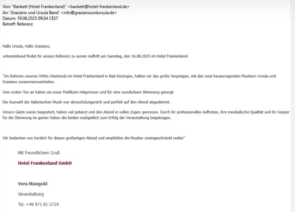 ➡️ Ob stilvoller Empfang oder energiegeladene Party: Graziano & Ursula bringen das italienische Lebensgefühl direkt auf Ihre Bühne!