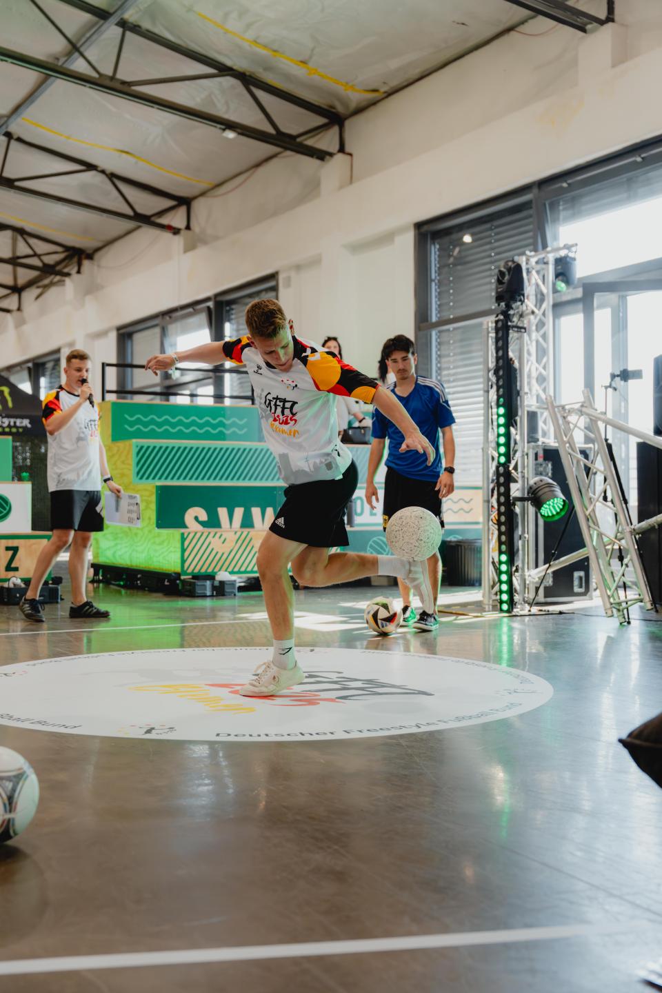 Durch meine Leidenschaft für Freestyle-Football und regelmäßiges Training entwickle ich meine Tricks und Performances stetig weiter, um dem Publikum immer neue Highlights zu bieten.