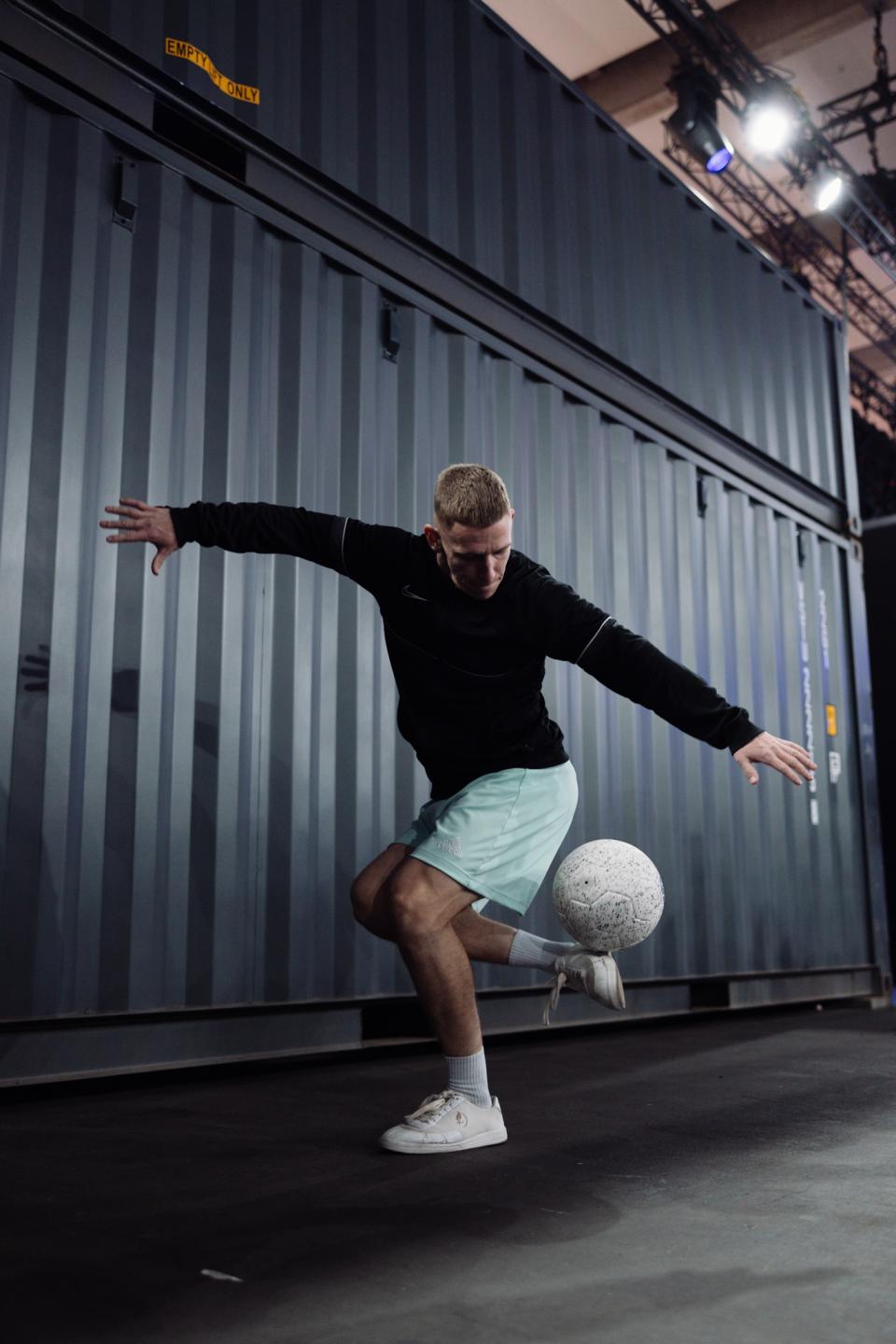 Freestyle-Football-Show mit spektakulären Tricks und Ballkontrolle.