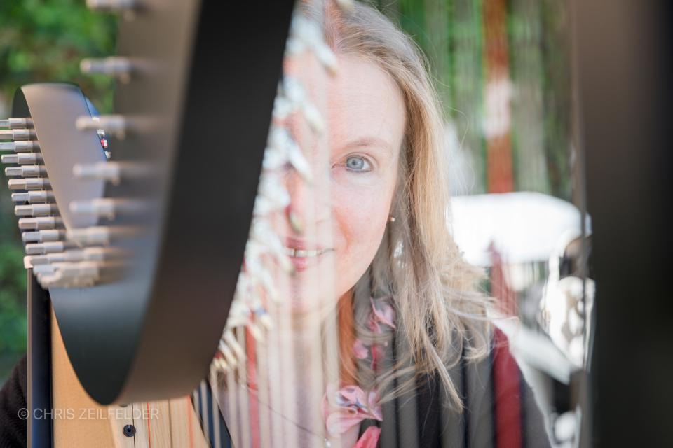 Meine Spezialität ist außerdem die kleine ( und sehr kleine) Harfe, mit der ich zum Beispiel für Yogakurse leise und entspannende Klänge im Hintergrund anbieten kann.
