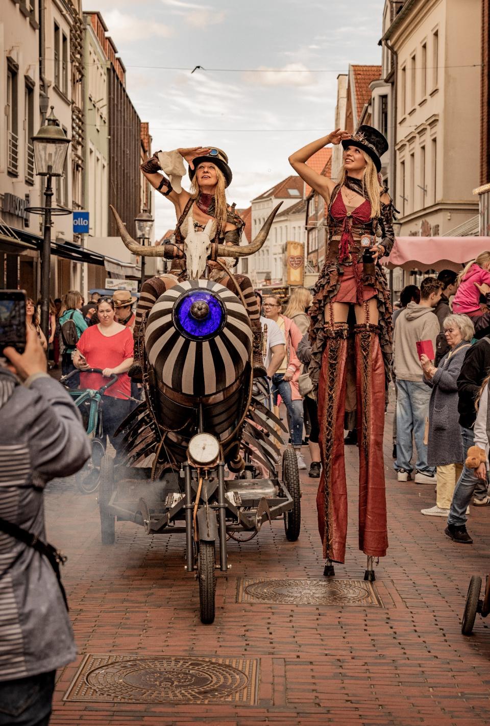 Tauchen Sie ein in eine Welt voller Eleganz, Fantasie und innovativer Inszenierungen! Unser Repertoire an Stelzenfiguren umfasst über 20 beeindruckende Kostüme, die jede Veranstaltung in ein visuelles Spektakel verwandeln.