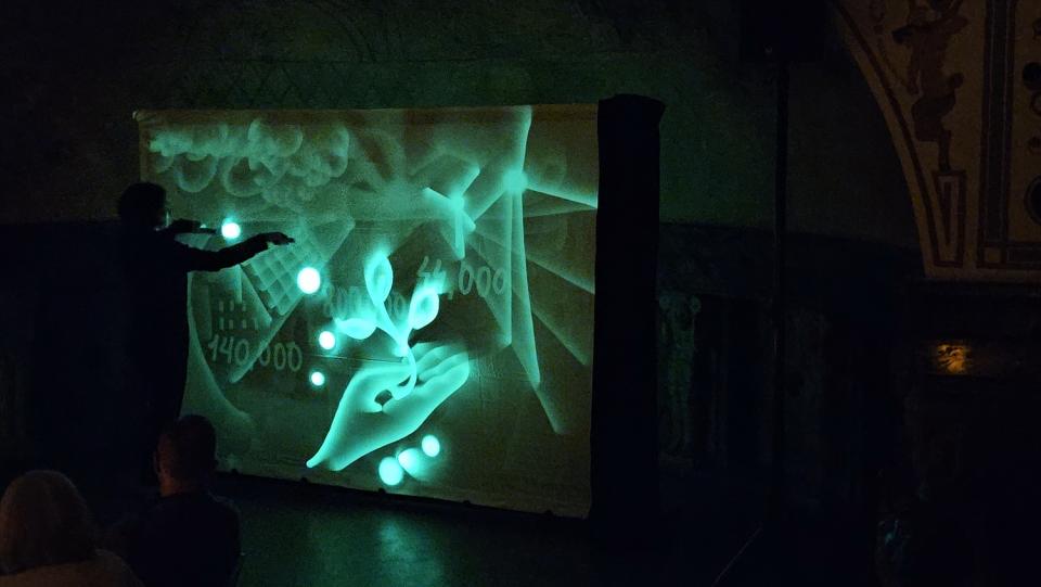 Sandmalerei buchen für Firmenevent, Firmenjubliläum, Gala Dinner oder Hochzeit. In völliger Dunkelheit beginnt der Künstler mit einem Lichtstrahl auf einer Leinwand an zu malen. Im Laufe der Licht Show werden aufeinanderfolgende Bilder erschaffen, die oftmals in einer berührenden und emotionalen Geschichte dargestellt werden. Untermalt mit stimmungsvoller Musik und erstaunlichen Lichteffekten erleben Sie eine unvergessliche Lichtshow.