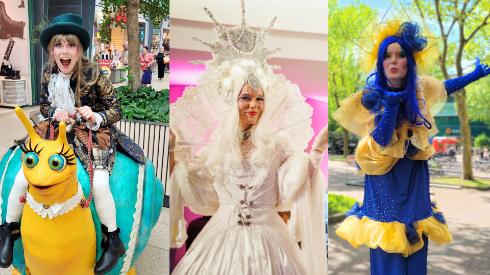 Märchenhafte Wesen, wie Rennschnecke, Stelzendrachen und Zentauren gehören zum Repertoire, aber auch edel anmutende Damen, wie die Schneekönigin oder das Blumenmädchen be- und verzaubern Sie gerne.
