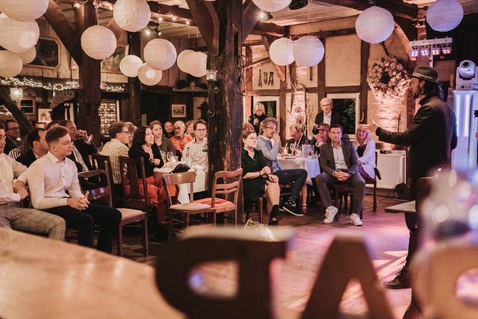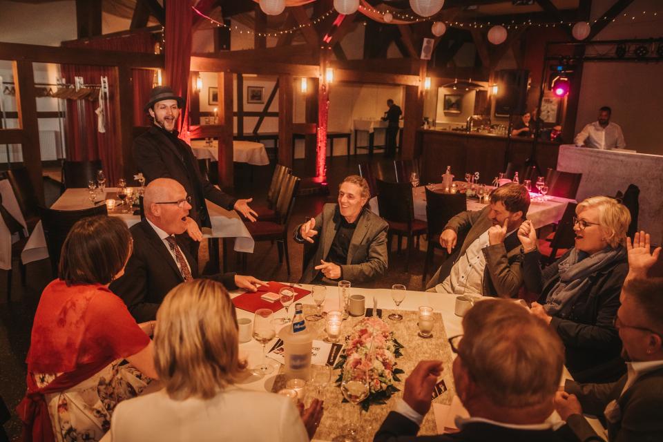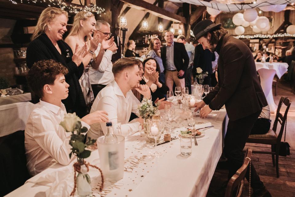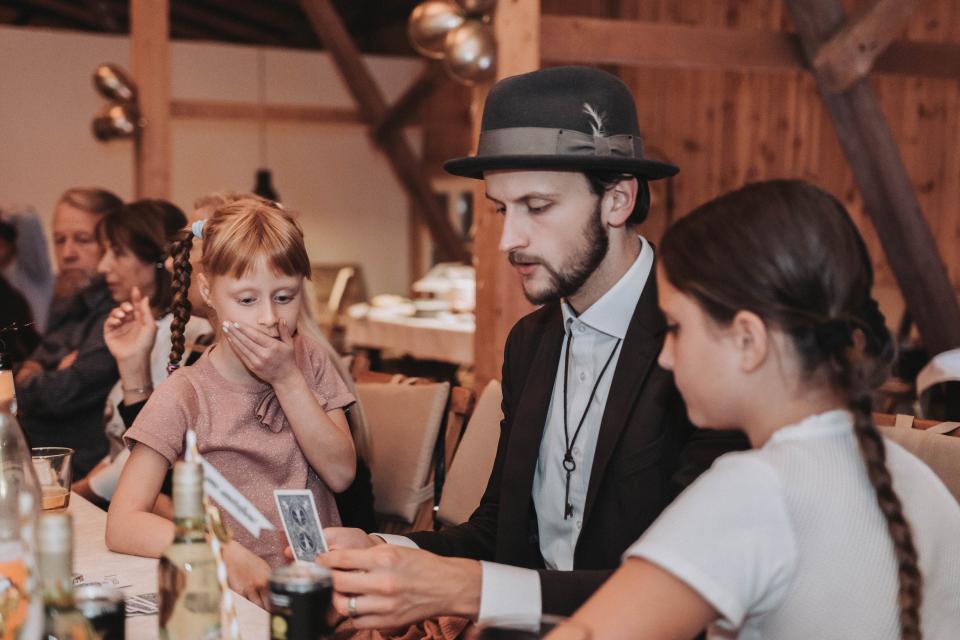 Lucas Kaminski begibt sich auf Ihre Veranstaltung und verzaubert jeden einzelnen ihrer Gäste persönlich. Zauberkunst so direkt zu erleben, verbindet die verschiedenen Gespräche Ihrer Gäste und hinterlässt einen bleibenden Eindruck. Tischzauberei hat den einzigartigen Vorteil, dass Sie nicht im Mittelpunkt Ihrer Veranstaltung stehen muss, sonder ihre Feierlichkeit begleitend unterstützten kann. Deswegen eignet Sie sich beispielsweise Ideal für einen eindrucksvollen Empfang, Unterhaltung zwischen den Gängen, Auflockerung zwischendurch, besondere Überraschung während des Feierns, oder, oder oder…