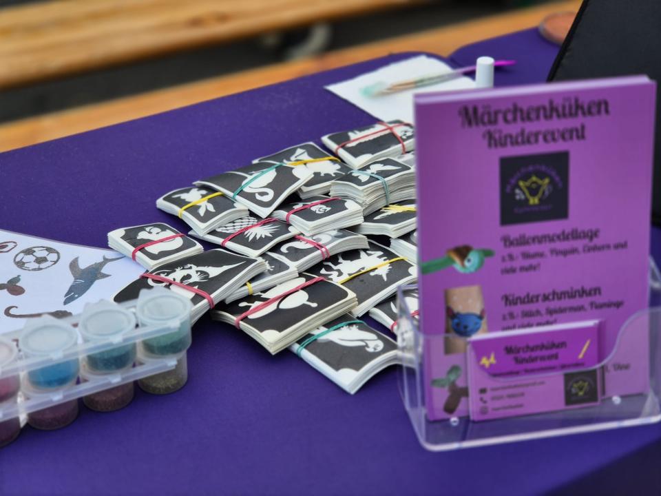 Außerdem bieten wir ein professionelles Set-up, hochwertige Materialien und eine ansprechende Präsentation auf Veranstaltungen. Zudem sind wir Mitglied der Facepainting School und bilden uns regelmäßig auf Workshops und in Weiterbildungen fort, um neue Techniken zu lernen und aktuelle Trends im Bereich Kinderschminken und Eventanimation umzusetzen.