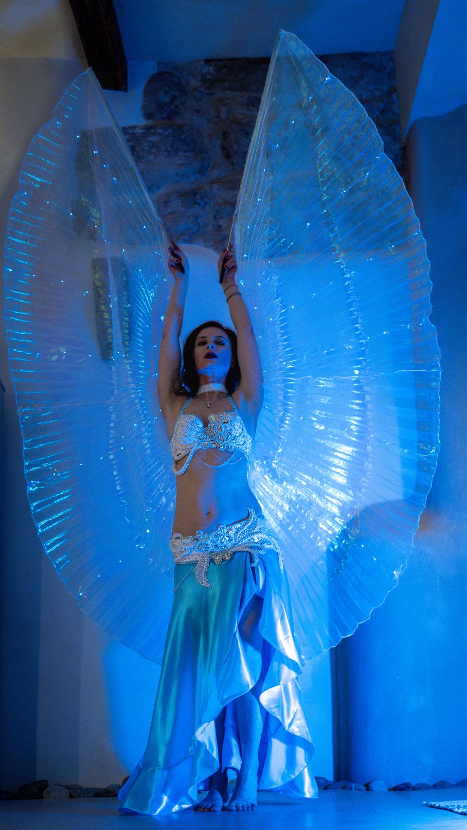 Tanzstile : Klassischer Bauchtanz, Orientalischer Tanz (Raks Sharqi), moderner orientalischer Tanz, Trommelsolo, Saidi, Baladi, Shaabi, Isis-Wings, Schleiertanz.