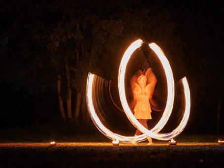 Lass dich mitreissen von den Feuerkreisen, dem Rauschen und der spielerisch gezähmten Kraft des Feuers.