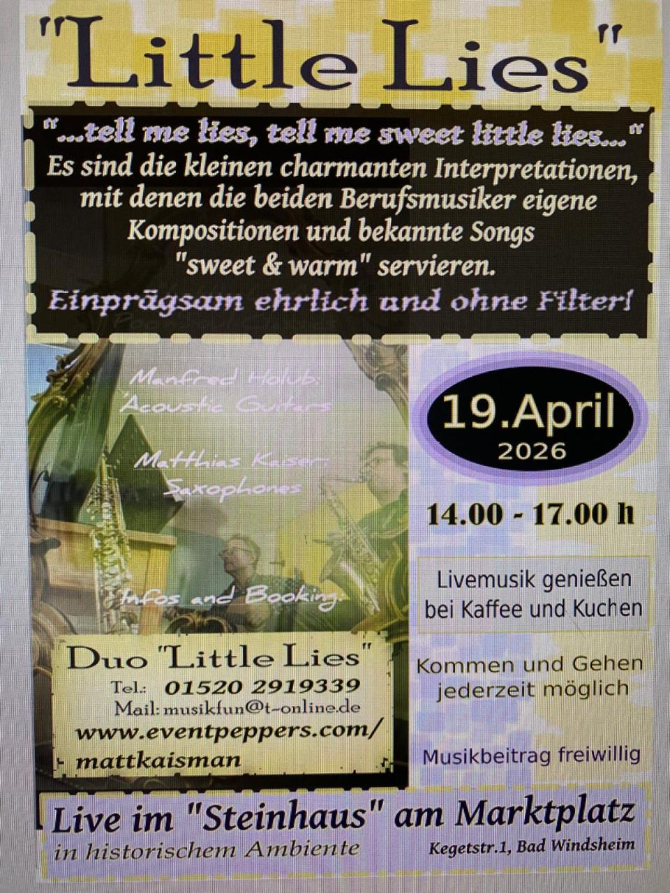 - Akustisches Duo "Little Lies" mit Manfred Holub, Akustische Gitarre und Tenor 🎷