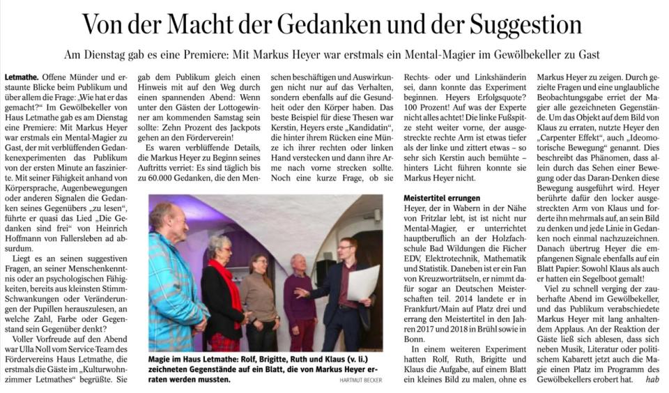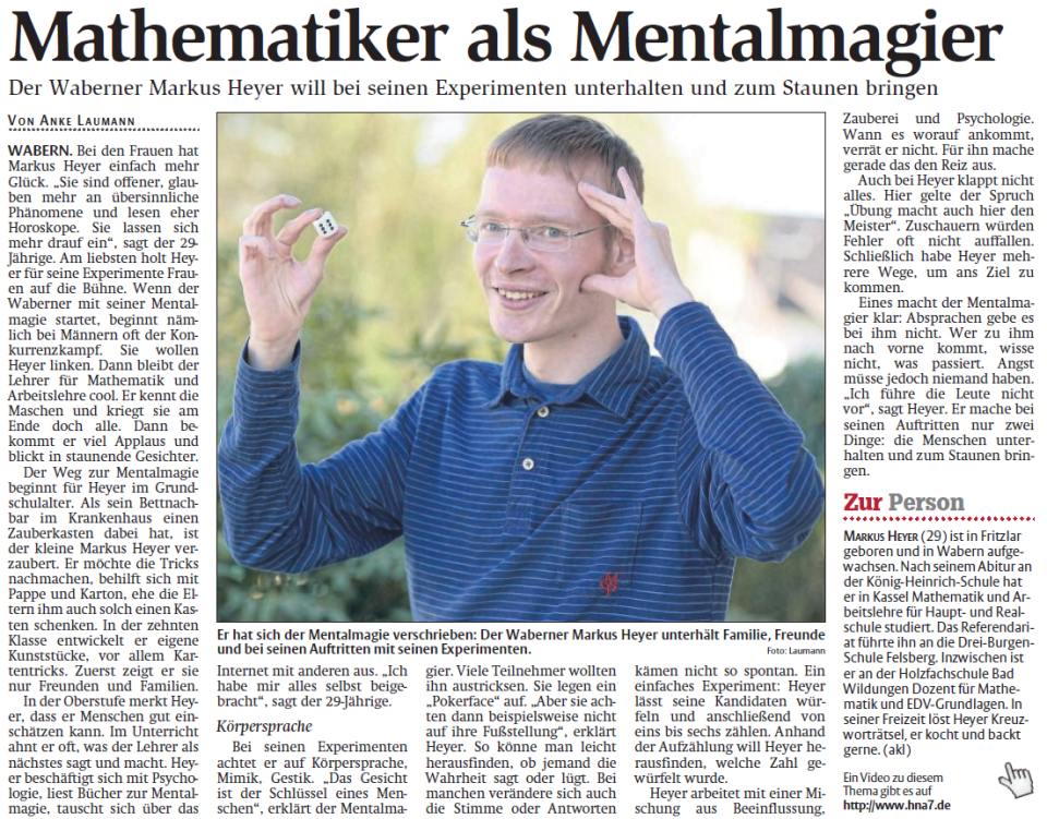 Markus Heyer blickt in Ihre Gedanken. Er fasziniert das Publikum mit mentalmagischen Experimenten.