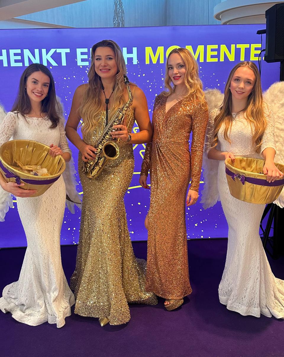 Ein besonderes Highlight ist, dass die Musikerinnen nicht nur auf der Bühne stehen, sondern sich auch mit kabelloser Technik zwischen den Gästen bewegen. Diese mobile Performance schafft eine exklusive Atmosphäre und eignet sich ideal für Messe-Standpartys, Networking Events, Galas oder Outdoor Veranstaltungen.