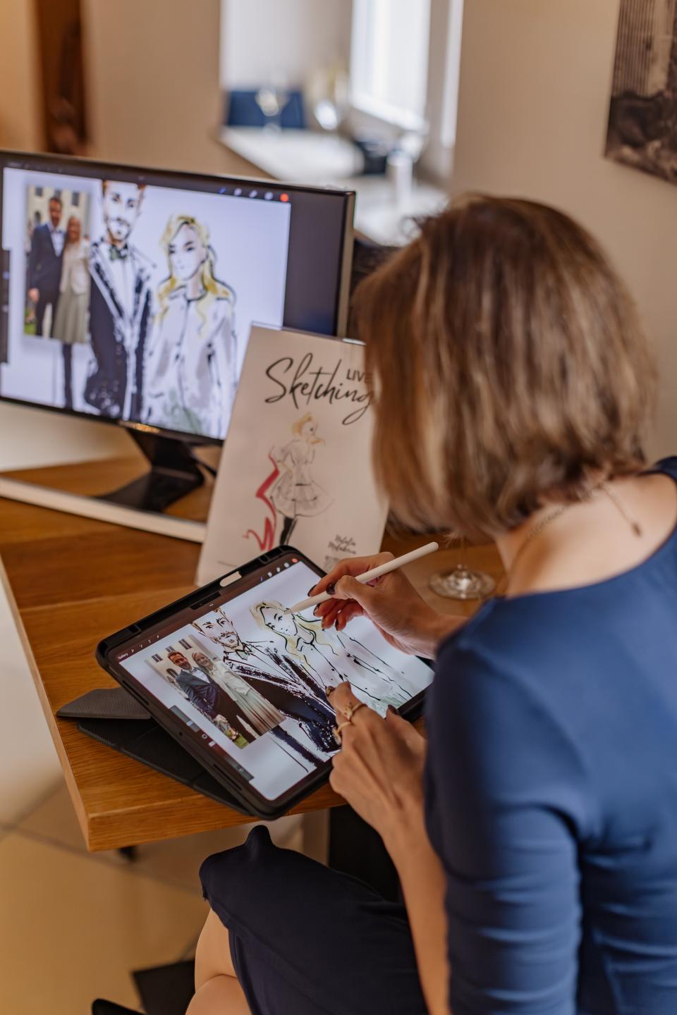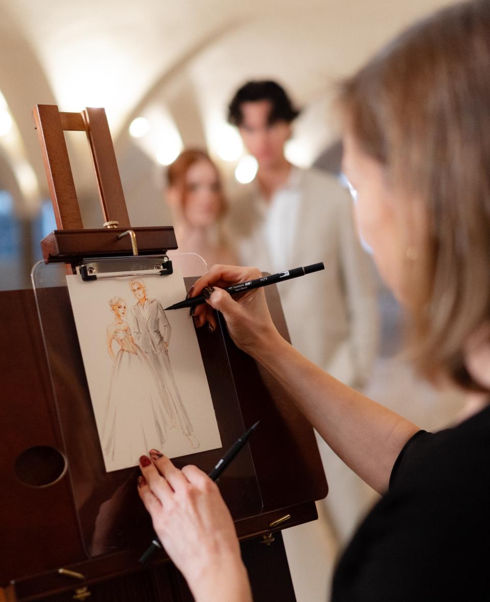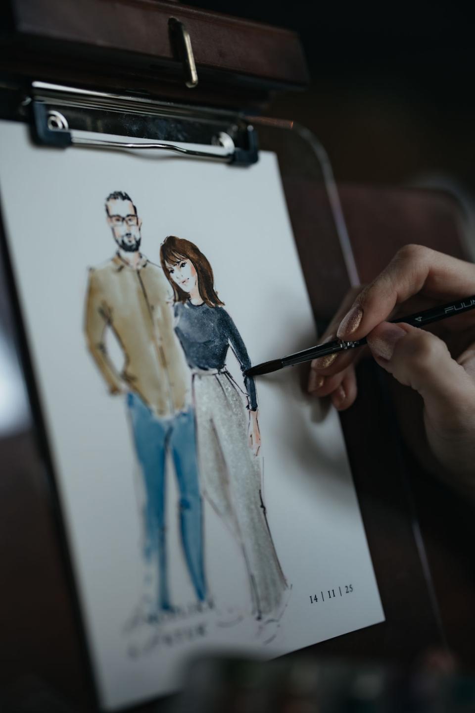Als Schnellzeichnerin begleite ich Ihre Hochzeit, Jubiläum oder ein Firmenevent mit Ganzkörperportraits im Fashion-Sketching Stil. Meine Zeichnungen sind keine Karikaturen, sondern durchaus schmeichelhafte, stylische Darstellungen der Personen. Perfekt für Anlässe wo sich die Gäste in Schale schmeißen oder wo bestimmte Kleidungsstücke oder Accessoires extra zur Schau gestellt werden.