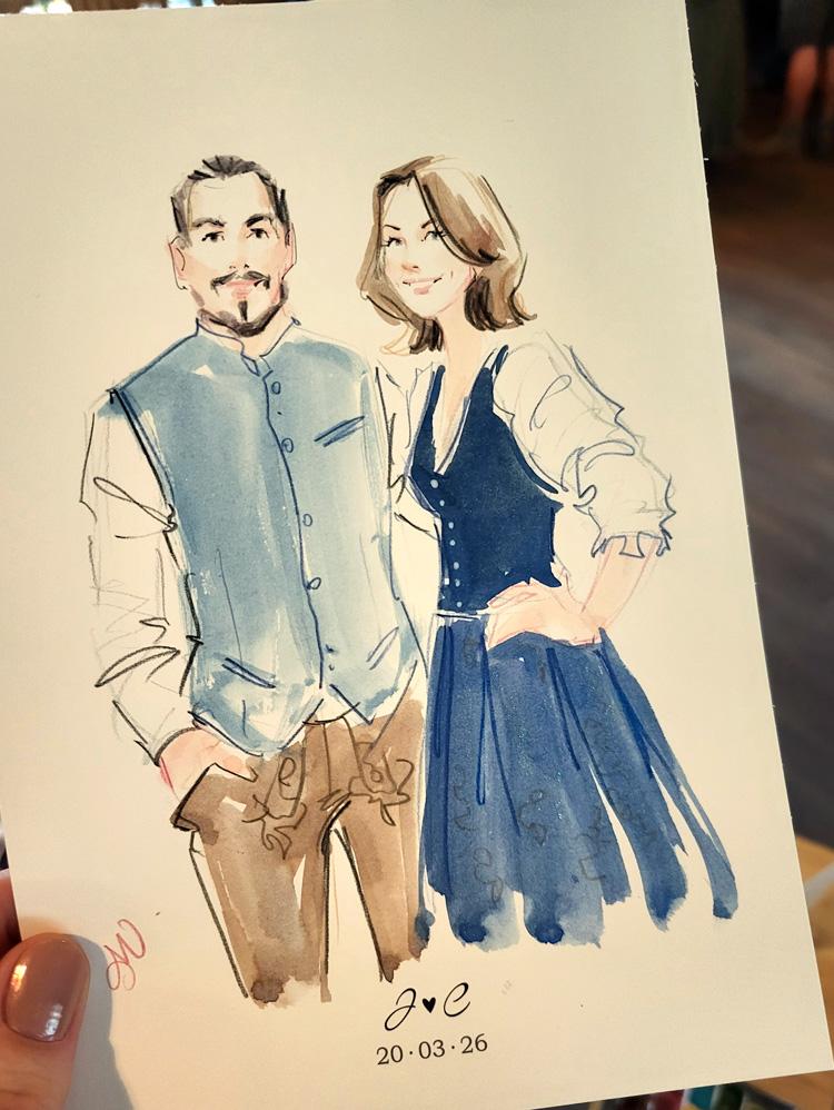 Innerhalb weniger Minuten verwandle ich Ihre Gäste in stillvolle Fashion-Illustrationen. Das Erlebnis gezeichnet zu werden schafft eine emotionale Bindung zur Veranstaltung und die Zeichnung als ungewöhnliches, wertvolles Geschenk wird sehr geschätzt, ja teilweise bis zu mehreren Jahren als persönliche Erinnerung an das Event aufgehoben.