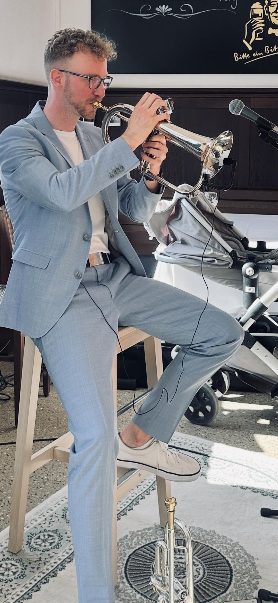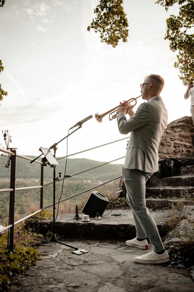 Musik ist meine größte Leidenschaft, die ich bereits seit über 15 Jahren beruflich ausüben darf. Dabei ist die Trompete mein Hauptinstrument, welches sehr variabel ist und perfekt zu allen Stimmungen passt. Mit Mikrofonierung und Hintergrundplayback oder ganz pur und unplugged - es gibt sehr viele Einsatzmöglichkeiten. Diese stimme ich perfekt auf Ihre Veranstaltung ab, um genau die Emotionen zu vermitteln, die Sie sich wünschen! Oftmals ist dabei eine gewisse Mobilität und Unabhängigkeit von Stromquellen gefragt, wenn die Veranstaltung beispielsweise im Freien stattfindet - diese kann ich mit meinem Equipment problemlos bedienen.
