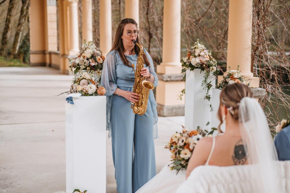 Ihr sucht nach einer chilligen Begleitung im Hintergrund für euren Sektempfang? Eure Gäste hören die neuesten und beliebtensten Popsongs mit Saxophon, wippen mit dem Fuß und nicken mit dem Kopf und genießen den Sektempfang bis zum Abendessen.