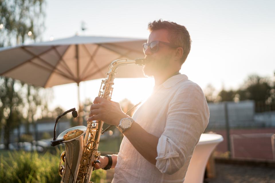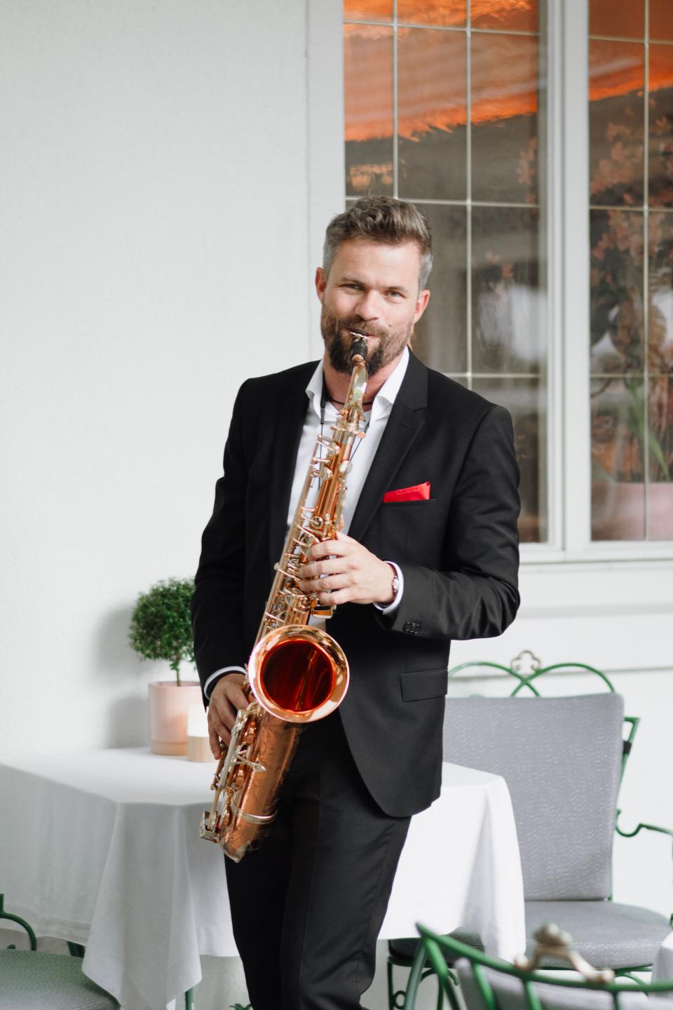 Mein Saxophonspiel zeichnet sich durch eine besondere Mischung aus Wärme, Eleganz, Emotionalität und Energie aus. Ob dezente Hintergrundmusik oder mitreißende Live-Performance – ich passe meine Musik stets perfekt an Anlass, Publikum und Atmosphäre an. Diese Vielseitigkeit erlaubt es mir, sowohl intime, stilvolle Momente zu gestalten als auch energiegeladene Höhepunkte zu setzen, die Ihre Gäste auf die Tanzfläche ziehen.