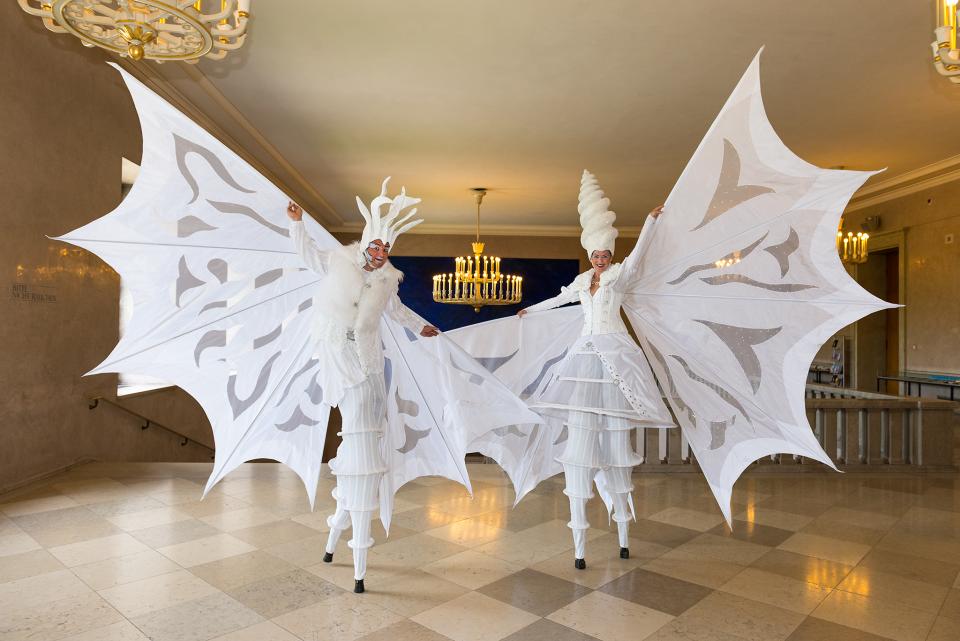 Professionelle Walking Acts auf Stelzen für Erwachsene und Kinder. Wir erstellen unsere variantenreichen und aufwendigen Fantasiemasken in liebevoller Handarbeit und sie sind alle Unikate. Wir haben jahrelange Erfahrung als professionelle Stelzenläufer mit tänzerischem und clowneskem Hintergrund. Wir sind auf vielen Events als mobile und charmante Unterhalter anzutreffen und bespielen dabei Innenstädte, Firmengelände, Gartenschauen, Freizeitparks, Festivals, Paraden, Stadtfeste und private Feiern. Auf Wunsch lassen wir auch über Ihren Köpfen Seifenblasen oder Windspiele schweben oder spielen auch mal clowneske Livemusik mit Akkordeon, Saxophon und Gesang. Auch als Begrüßungs-Act für verschiedenste Veranstaltungen werden wir gerne gebucht.