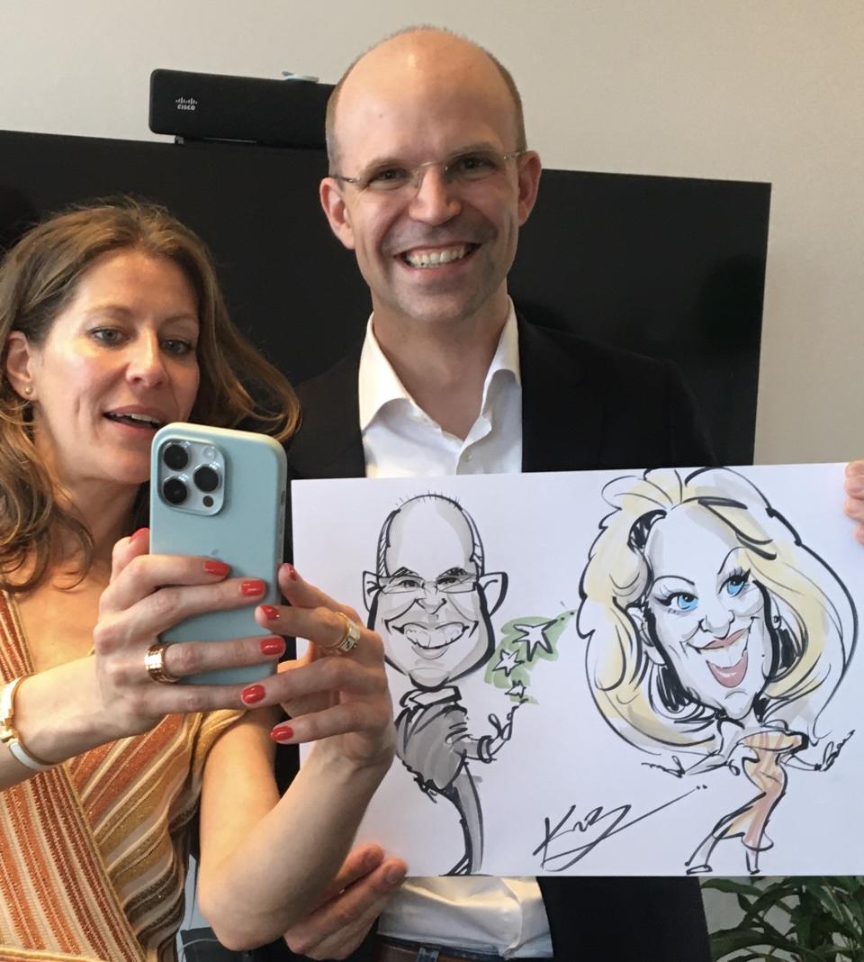 Er zeichnet Live Porträt Karikaturen auf Ihrem Event, Firmenveranstaltung, Hochzeit, Geburtstag, Organisation, Event, Messe und Weihnachtsfeier.