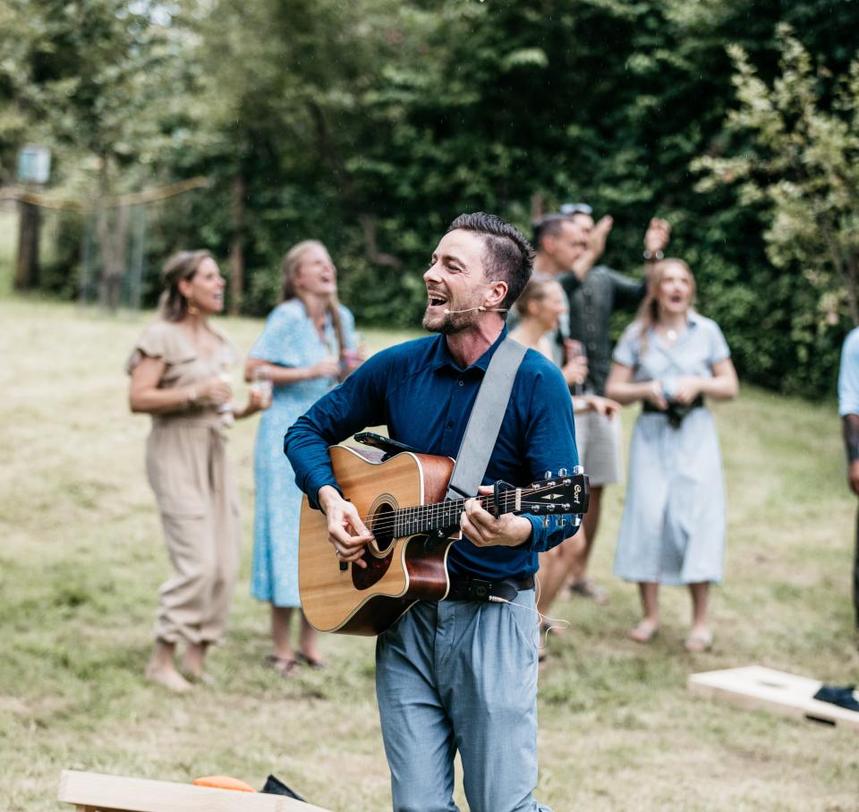 Ich trete solo auf, gerne aber auch im Duo oder mit weiteren Musikern aus meinem eingespielten Netzwerk – ganz nach Anlass und Wunsch. Mein Repertoire ist vielseitig: von gefühlvollen Balladen für Trauungen bis hin zu Mitsing-Klassikern für die Tanzfläche. Spontane Liedwünsche sind immer willkommen!
