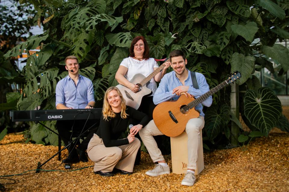Die Besetzung ist flexibel: Von Gesang mit Piano- und/oder Gitarrenbegleitung bis hin zu Trio- oder Quartettbesetzung mit E-Drumset ist vieles möglich. So entsteht je nach Anlass ein eleganter akustischer Klang oder ein voller Bandsound für lebendige und tanzbare Momente.