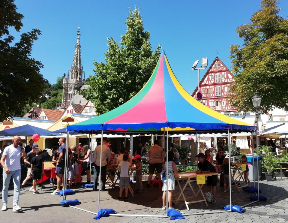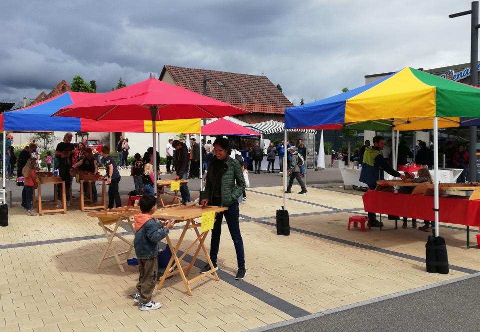 - Neu: 10 Spieltische für Kleinkinder mit vielseitigem Spielmaterial, 2 vierfarbige Zelte, 1 Spielleiter*in