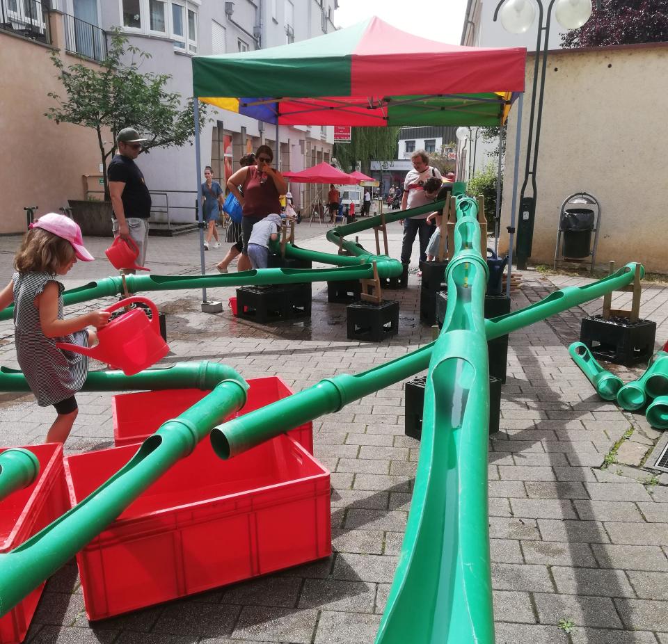 - Die Wasserbaustelle. Dieses variable Rohrsystem begeister Kinder aller Altersgruppen. 50m Rohrleitungen, viel Zubehör, 1 vierfarbiges Zelt, 2-3 Sonnenschirme, 1 Spielleiter*in