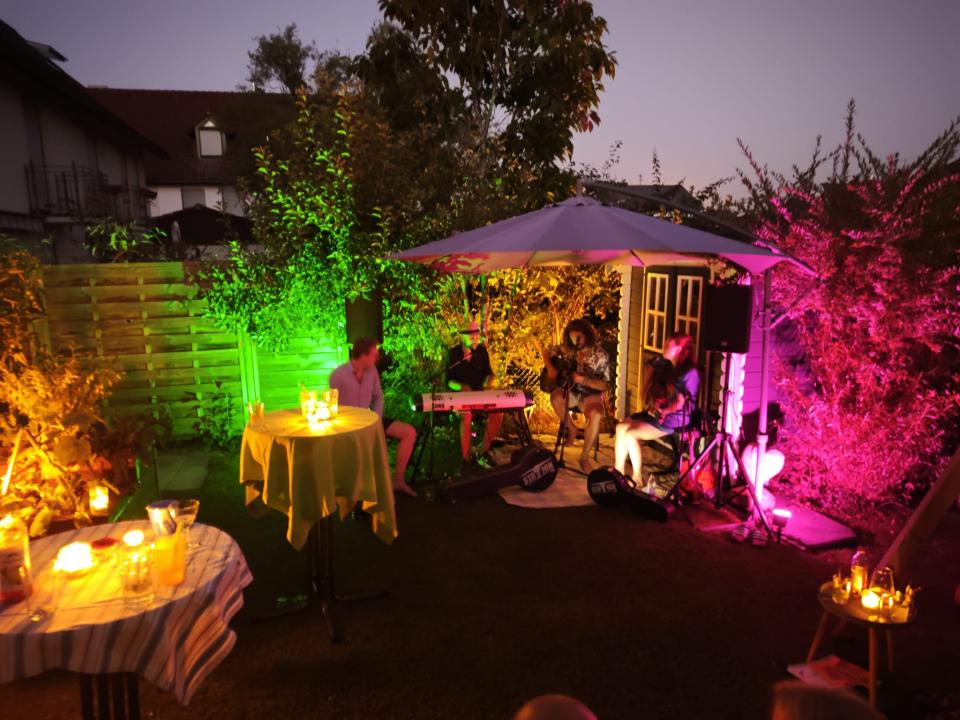 Wir sind regelmäßig auf Festivals, Stadtfesten und Firmenveranstaltungen in Süddeutschland unterwegs. Zu unseren Highlights zählen unter anderem Auftritte auf dem Tollwood-Festival in München, beim Kultursommer Günzburg, ein Konzert im Kulturschloss Höchstädt sowie Events an der Augsburger Floßlände. Auch zu Silvester waren wir bereits für eine große Gala engagiert. Darüber hinaus spielen wir immer wieder bei Kulturveranstaltungen in der Region sowie bei verschiedenen privaten Events mit mehrstündigen akustischen Live-Sets.
