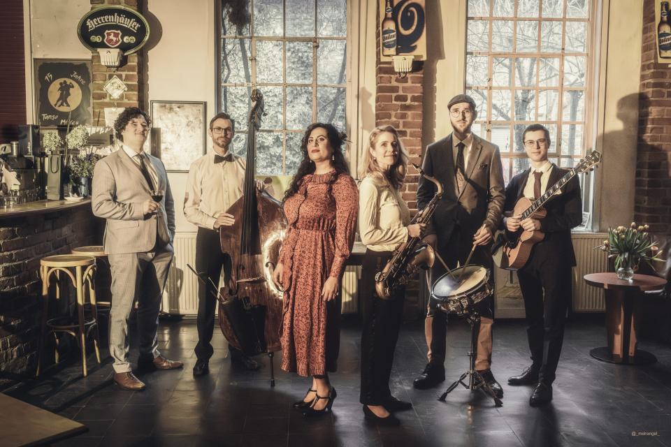 Unsere Sängerin Chiara begeistert mit ihrem ausdrucksstarken italienischen Gesang, begleitet von Klavier, Saxophon (oder Klarinette), Gitarre (oder zweites Saxophon), Kontrabass und Schlagzeug. Ob konzertant oder tanzbar – wir bringen den Swing mit Spielfreude, Witz und Groove auf die Bühne und sorgen dafür, dass kein Fuß stillsteht.