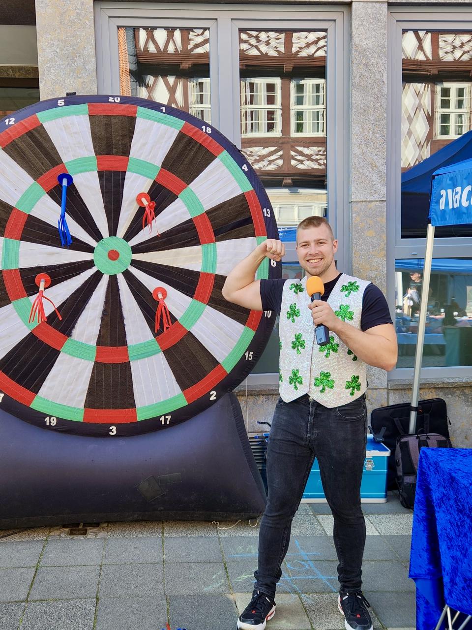 - Spaß am Riesen-Dart mit einem unterhaltsamen und sportlichen Gewinnspiel